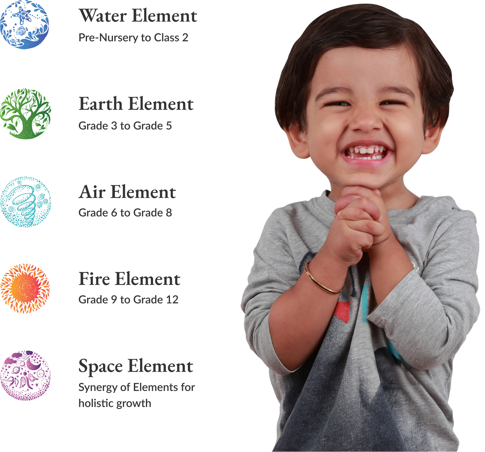 Sharda World School is India’s 1st school which integrates the five elements of nature (Water, Earth, Air, Fire, Space) into its learning philosophy — a distinctive feature aimed at holistic education.
